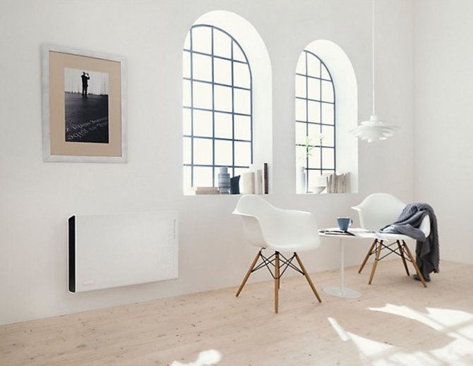 Наверное самый приятный в нашем обзоре, и посвящается он дизайну. Конечно вариантов для творчества не так много, но все же. Электрические конвекторы можно встретить как традиционных белых расцветок так и других цветов, вплоть до зеркальных вариантов. Конструктивные решения, также подбираем по потребностям, стандартно конвектор имеет одну высоту в районе 45 см, но меняется в длине в зависимости от мощности. Кроме того, существуют интересные предложения плоских моделей и экономящий пространство — плинтусный конвектор.