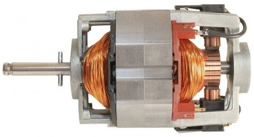 Коллекторный двигатель отличается наличием… коллектора. Даже если нельзя увидеть снаружи (скрыт кожухом), заметим непременные графитовые щетки, прижатые пружинками. Деталь требует замены со временем, поможет коллекторный двигатель от асинхронного отличить.