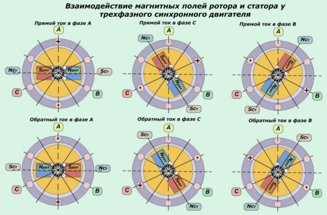 поддерживается постоянным относительно потока якоря. В результате взаимодействия потока якоря и возбуждения создаётся вращающий момент M , который стремится развернуть ротор так, чтобы потоки якоря и возбуждения совпали, но при повороте ротора под действием ДПР происходит переключение обмоток и поток якоря поворачивается на следующий шаг.