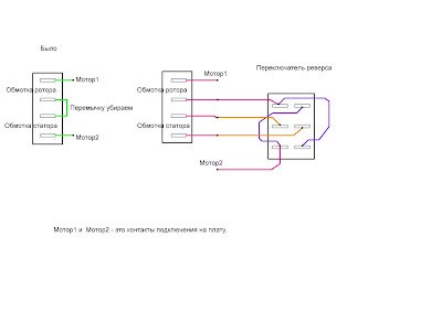 есть более наглядная схема подключения реверса, может кому-нибудь поможет.