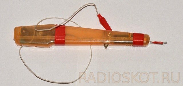 При касании щупами металлической поверхности или замыкании щупов между собой лампа загорается. Вот и весь принцип работы прозвонки.