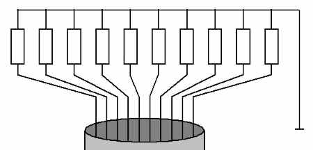 Способ 2: использование блока резисторов с разным номиналом, подключенного к проводам кабеля с одной стороны, как показано на рисунке.