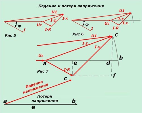 Схема падения и потери напряжения Определение ΔU и потерь напряжения