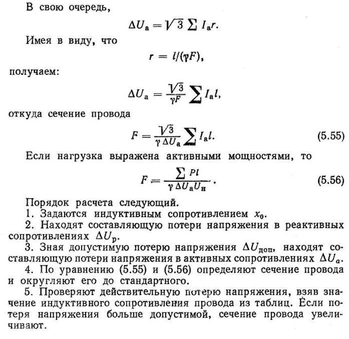 Где ΔU – потери напряжения в линии,