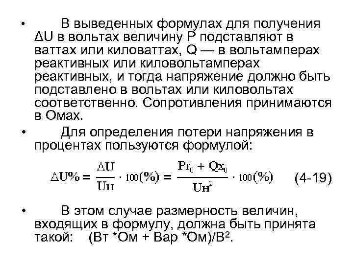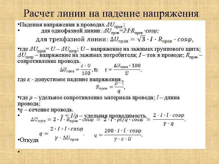 Для вычисления величины напряжения, приходящейся на нагрузку, производятся такие расчеты: UН = U — ΔU, где
