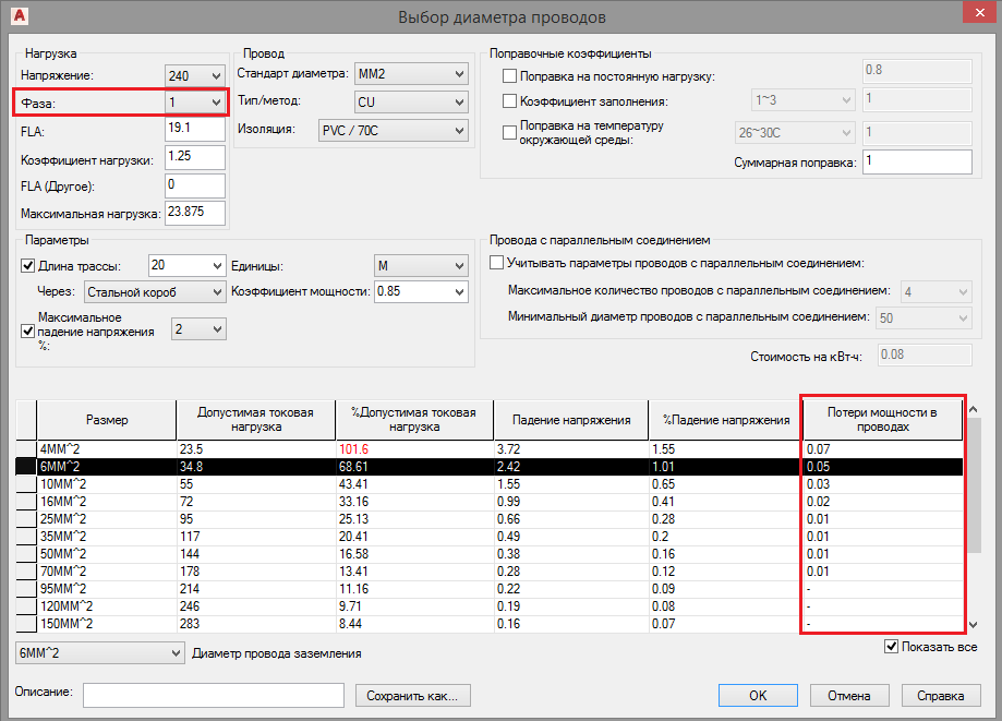 Программа AutoCad для расчета падения напряжения