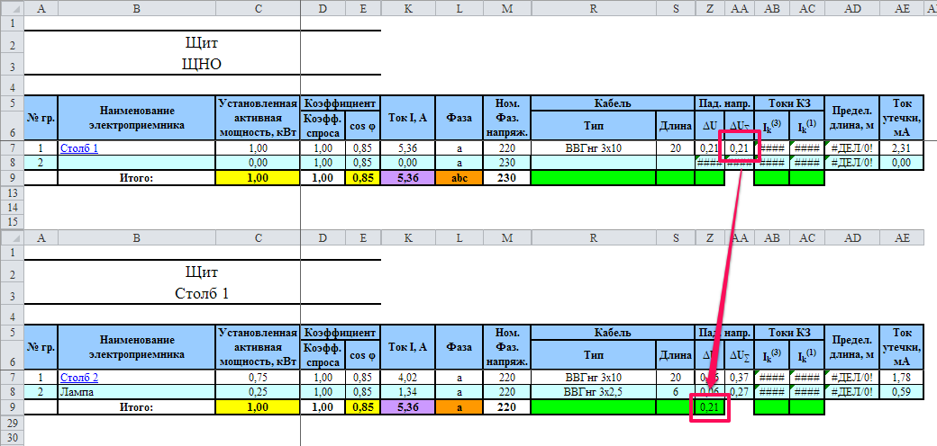 Проверка кабеля по потере напряжения