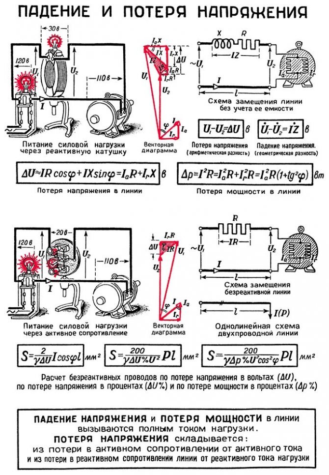 Пользователь сети не может повлиять на потери в ЛЭП, но может снизить падение напряжения на участке цепи, грамотно подключив ее элементы.