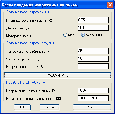Калькулятор расчета потерь напряжения в электрическом кабеле