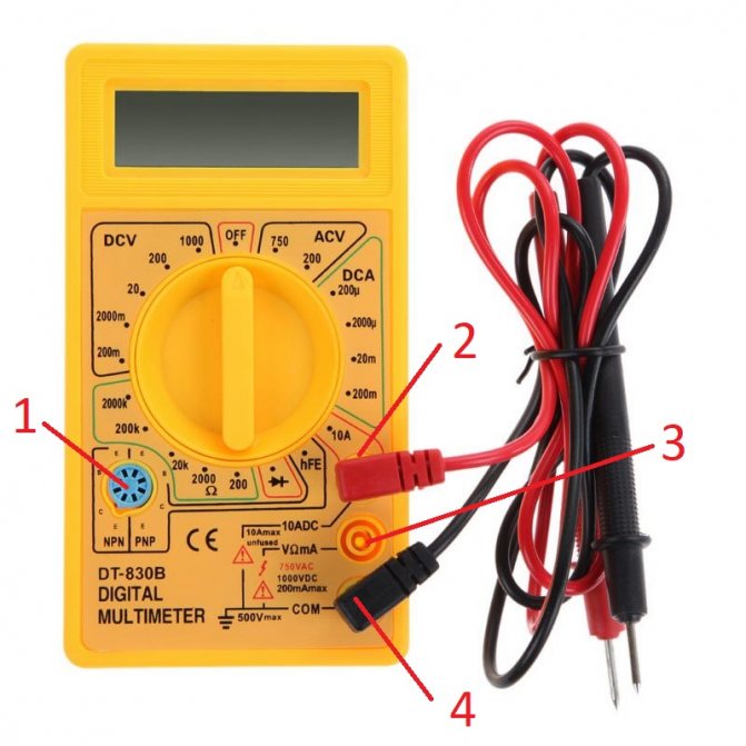 Официальная dt 830b инструкция рекомендует отключать технику от сети при измерении сопротивлений. Индикация «1» свидетельствует о перегрузке, поэтому выбирают больший диапазон. Если показан «0», переключают рукоятку в другом направлении.