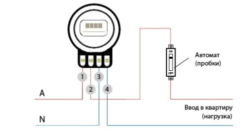 Нулевой провод соединяется с третьей клеммой электросчётчика, а фаза — с первой.