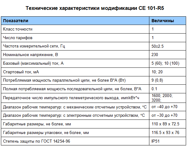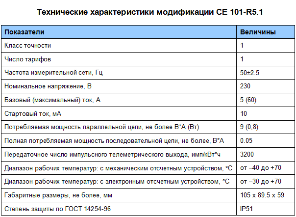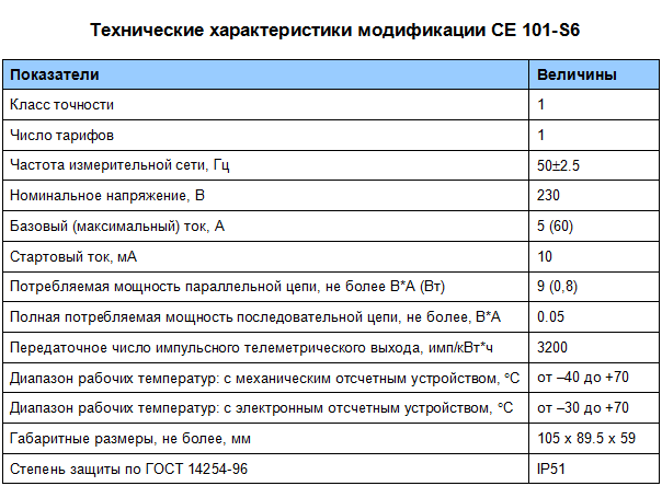 Перед покупкой определенной модели электрического счетчика Энергомера рекомендуется узнать технические параметры устройства. Энергомера СЕ 101 обладает такими параметрами:
