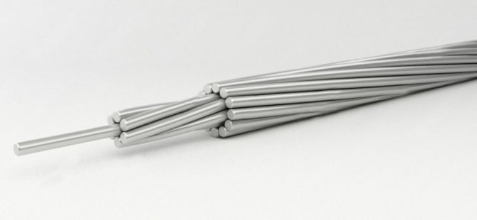 Неизолированный провод изготовлен из стального сердечника, и проволоки из алюминия. Направление соседних повивов скрутки строго противоположное.