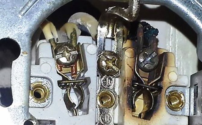 Если заметно, что контактные провода были подвержены воздействию высоких температур, значит это и есть причина нагрева розетки. Чтобы привести их в норму, необходимо полностью извлечь розетку из своего гнезда, предварительно ослабив винты, которыми она была закреплена. После этого произвести зачистку контактов и поместить их обратно в контактные зажимы, как следует затянув крепежные винты. Потом розетка собирается и устанавливается на свое место.