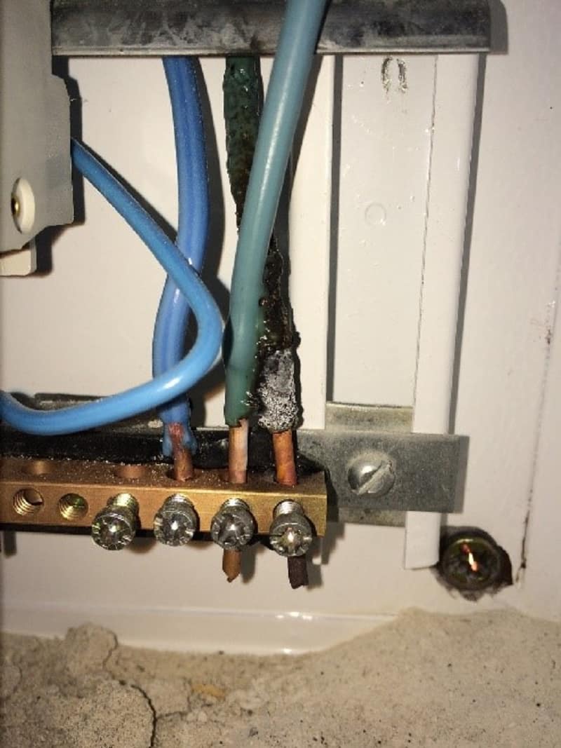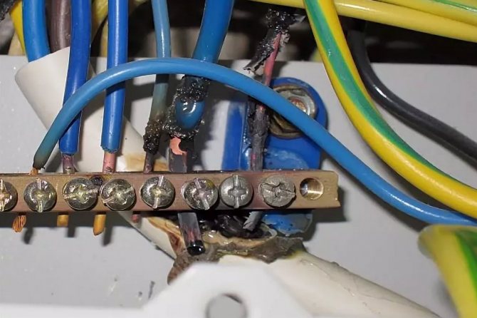 Так же очень распространен вариант, когда перегревается провод в распределительном щитке. Причина этого кроется в плохом контакте или неправильно выполненном подключении.