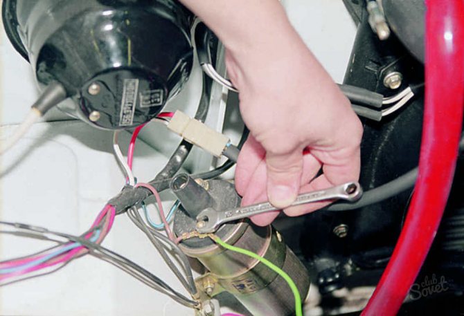 - Колодку следует открутить, достать провода и зачистить их, а также места крепления колодки. Для зачистки удобно использовать небольшой надфиль или мелкозернистую наждачную бумагу.