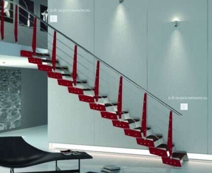 Использование двух выключателей для освещения лестницы стало необходимостью. Включив свет на первом этаже, вполне логично погасить его вторым выключателем наверху