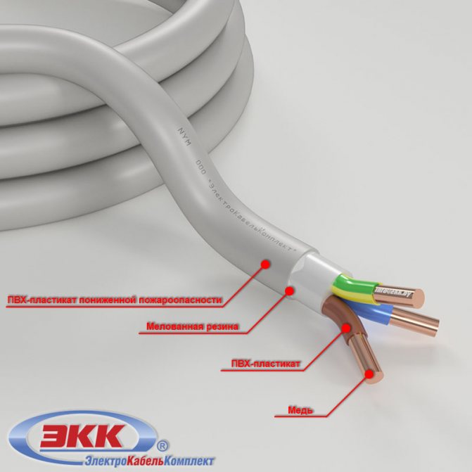 Многие ошибочно рассказывают о добавлении меловой смеси в изоляцию жил данного кабеля, якобы для снижения горючести. Никакого мела там нет.