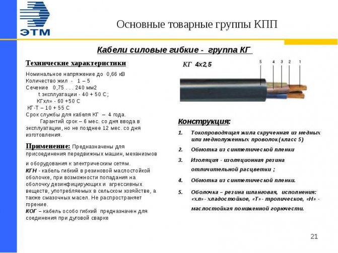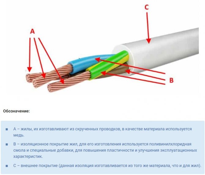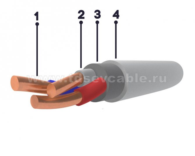 В нем используются медные жилы, которых может быть от 2 до 5 штук. Также производитель указывает сечение. Например, 3×2,5 показывает наличие трех жил и сечение 2,5 кв. мм.
