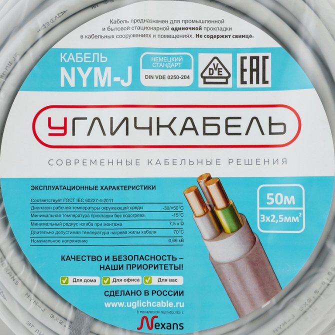 Среди многих проводников кабель NYM принято считать «золотой серединой». Чтобы лучше понимать его качество, рассмотрим основные достоинства данного изделия: