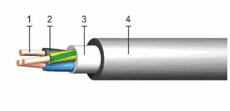 Кабель такого типа может иметь от 1 до 7 жил из меди. Сечение может достигать 6 кв. мм. Вы можете найти изделие с маркировкой ls (low smoke), что означает пониженное дымообразование при нагреве. Буква J показывает наличие защитной заземляющей жилы желто-зеленого цвета. Если после названия нет буквы или стоит буква О, это значит отсутствие заземляющей жилы.