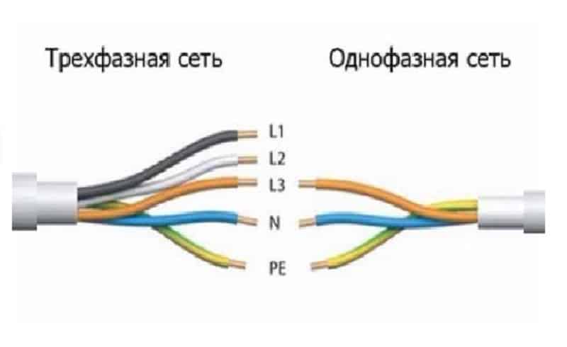 По цветовой маркировке легко можно определить назначение данного конкретного кабеля. Проводник в синей оболочке — всегда ноль в однофазных либо нейтраль в трехфазных сетях. Желто-зеленый — общеизвестное обозначение «земляного» проводника. Все остальные цвета обозначают фазы.