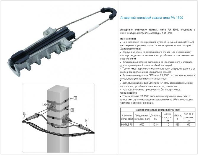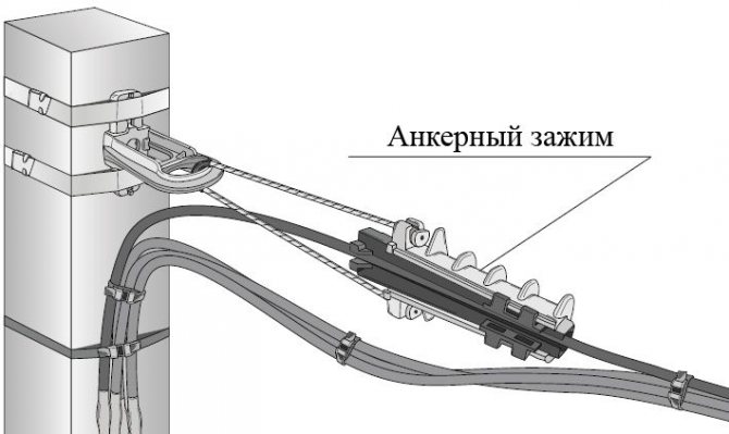На анкерных опорах, несущих усилие натяжения проводников, устанавливаются анкерные зажимы, на расположенных между ними промежуточных опорах — поддерживающие зажимы.