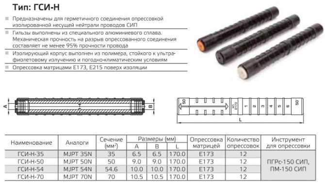 На изолированных линиях низкого напряжения ВЛИ-0,4кв применяются аналогичные соединительные гильзы MJPT или ГСИ-Н.