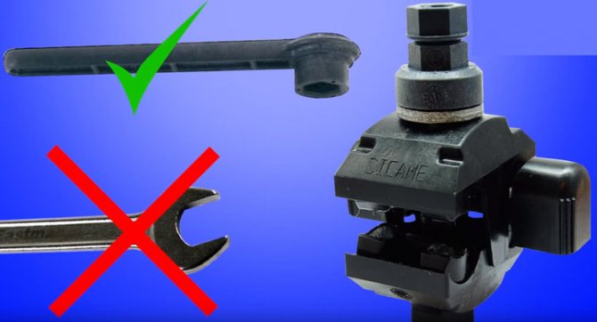 Компания Ensto предлагает несколько иной вид соединительного зажима. Здесь вам вообще не понадобится никаких ключей или пресса.