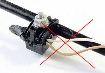 Еще один важный момент при использовании проколов – запрещается применять подключение более одного ответвления на одном герметичном прокалывающем зажиме, если это не предусмотрено его конструкцией.