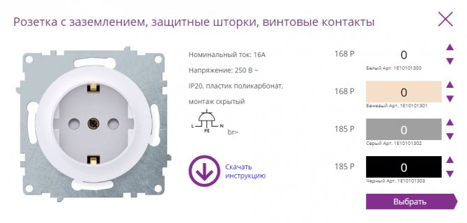 Цены и описания на все электроустановочные изделия Florence можно найти в карточках товара разделе «Каталог продукции». Вот товарные карточки одинарной розетки с защитными шторками и аналогичной розетки без защитных шторок (цены на розетки зависят от цветов, белые и бежевые розетки немного дешевле, серые и черные немного дороже).