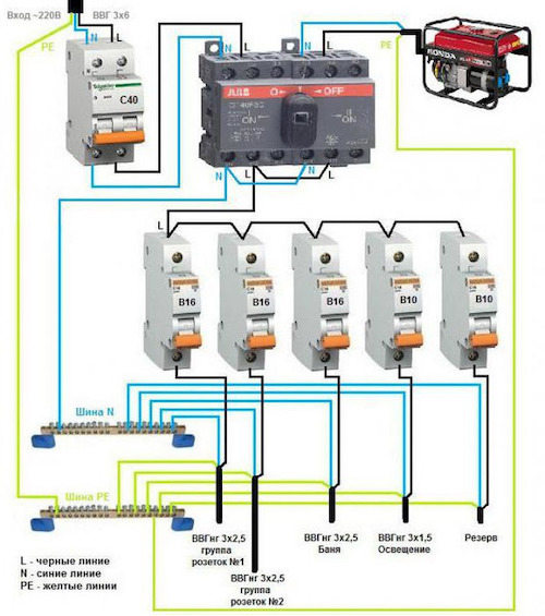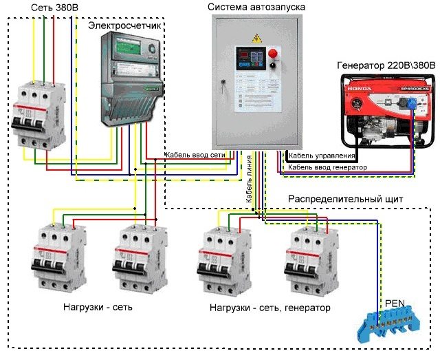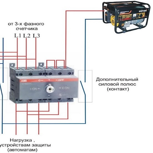 Если в основной сети нет напряжения, вначале запускается генератор, а потом переводится в рабочее положение рубильник.