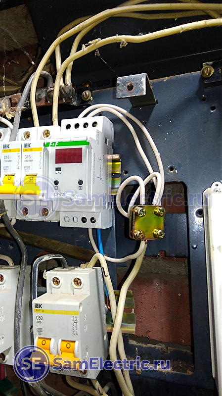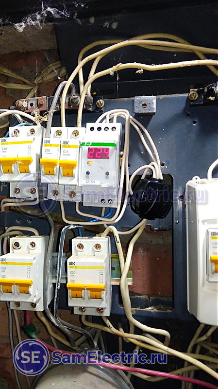 Чтобы не было вопросов – скажу сразу, что контактор устанавливать нет необходимости, поскольку теоретически реле напряжения выдерживает ток до 30 А, а согласно маркировке на внутреннем реле – до 40 А. Но это теоретически, а как на практике – покажет время, обязательно сообщу дополнительно, если что. Да и ещё есть банальная причина – в щитке элементарно нет места. Это также основная причина, почему я не поставил автомат байпаса.