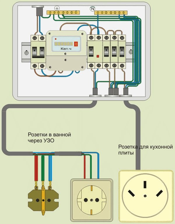 Внимание! Если вы решили подключить электроплиту к общей сети квартиры, то, с учетом суммарной мощности всех электроприборов, номинал УЗО на распределительном щите должен быть не менее 40А.