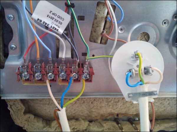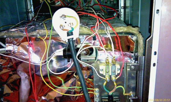 - Открывают соединительный узел электроплиты. Он находится на задней панели.