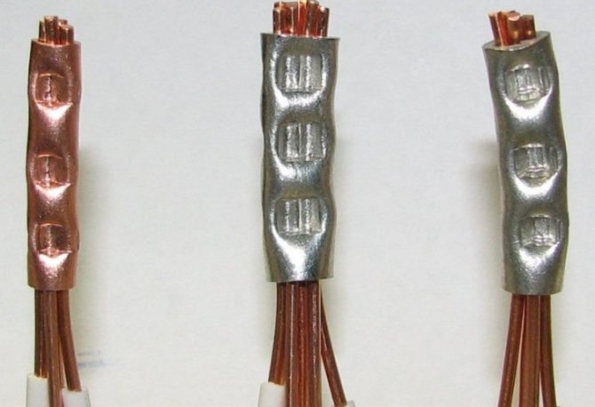 - вставить в неё оголённые провода внахлёст, добавив для надёжности дополнительную медную жилу сечением 1,5 мм2;