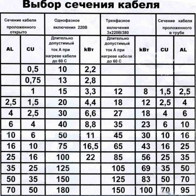 Если и это требование не получается выполнить, то подсчитывая, выдержит ли провод, надо принимать во внимание только кабель меньшего сечения