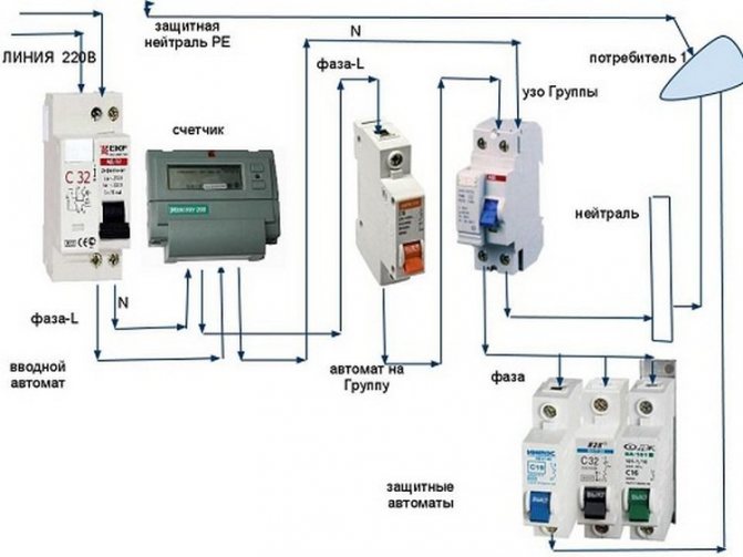 Для улучшения эргономии щита, пару автомат защиты+УЗО лучше заменить на дифференциальный автомат защиты (дифавтомат). Он выполнит обе функции защиты. Номинал дифференциального автомата защиты 16 Ампер.