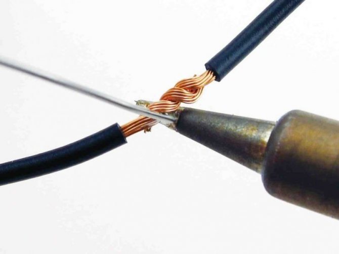 Для этого необходимо последовательно выполнить ряд действий. Разберем их на примере спаивания проводов. Это: