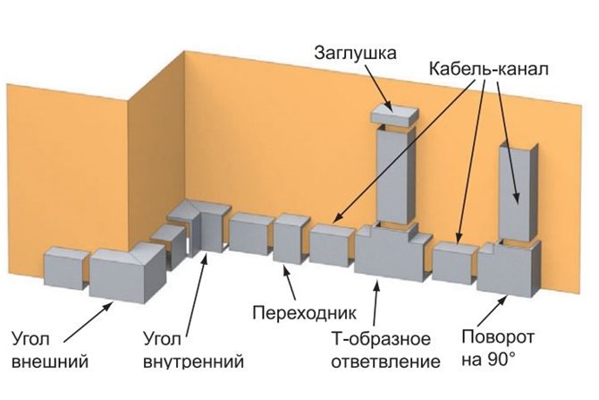Перед подбором канала следует разработать эскизный проект электропроводки и определить номенклатуру материала. Стандартные короба имеют длину по 2 м и поставляются в пачках. Их количество в упаковке варьируется от 9 до 100 шт. Также необходимо закупить требуемое количество соединителей и угловых переходов.