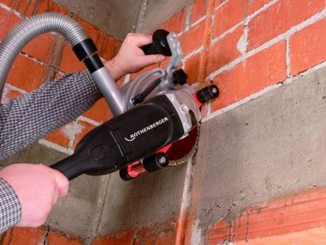 Штробление стен можно выполнять разными инструментами. Это могут быть зубило с молотком, болгарка или перфоратор со определенными насадками либо специально предназначенный для этого штроборез. При эксплуатации последнего прибора вы рискуете понести серьезные финансовые затраты, но зато проделанные канавки получатся идеальными.