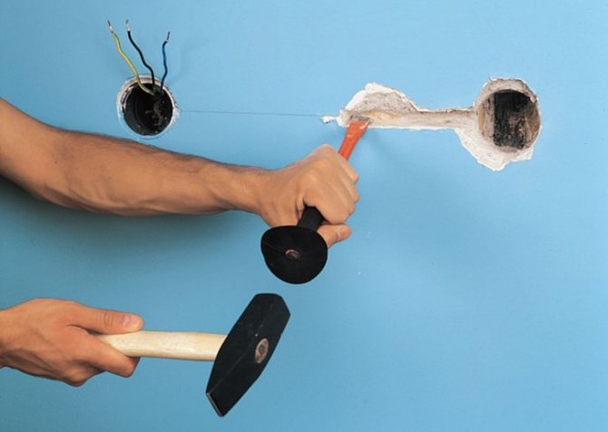 - Зубило следует устанавливать не вдоль, а поперек штробы, а затем постепенно вбивать молотком в стену.