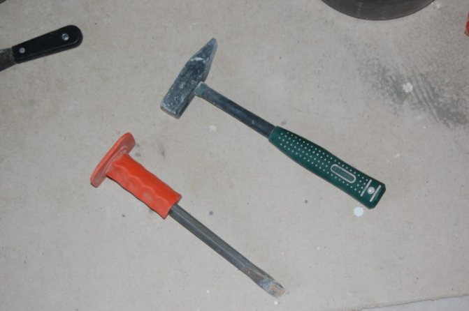 - Зубилом и молотком, если стяжка достаточно мягкая, а вынимать её нужно не много.