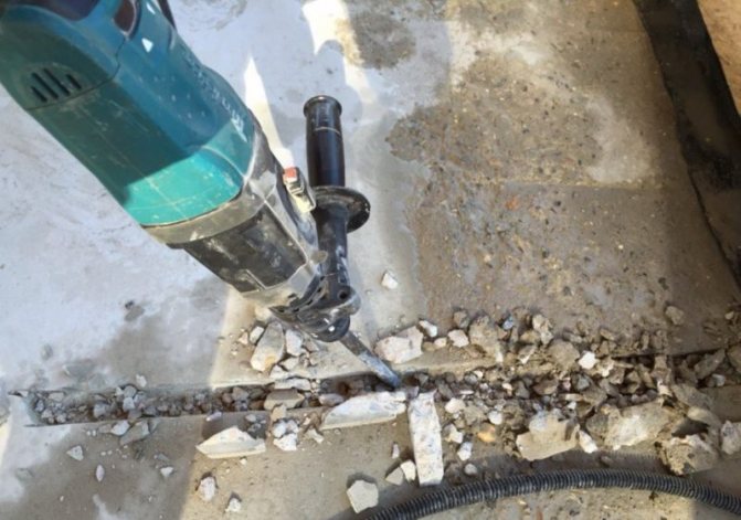 Перфоратор при штроблении стяжки можно использовать для выемки материала в штробах между резами.