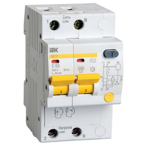 Нажатием этой кнопки происходит закорачивание нулевого провода входной клеммы и фазового провода на выходе устройства, через резистор, рассчитанный на ток 30 мА (или другой ток утечки, указанный на автомате). Устройство защиты отключается и обеспечивает защитную функцию. Такую проверку можно делать без нагрузки. Дифференциальный автомат может быть электромеханическим или электрическим, главное правильно подключить его к сети.