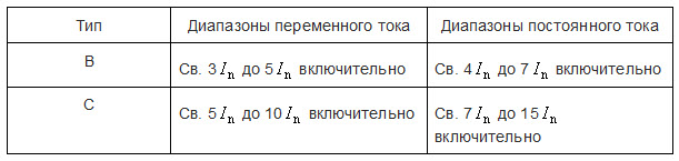 На сегодняшний день различают две группы выключателей, принадлежащих разным диапазонам токов мгновенного отключения (ранее было три):