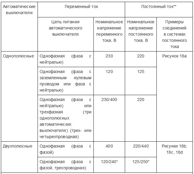 Любое методическое руководство должно оговаривать, для каких типов защитных автоматов оно разработано.