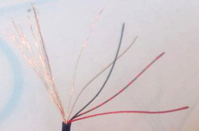 Лучше всего подстригать косу точно так же, как на рисунке. Не следует слишком сильно нажимать на лезвие. Изгиб поможет косе отделиться. Скрутите проволоку, делая надрезы, и снимите оплетку, сделав круг. Самое главное — не перерезать провода.