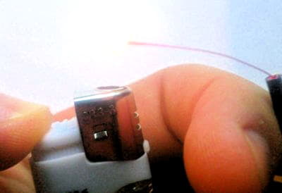 На доли секунды вносим конец провода в огонь. Он быстренько вспыхивает и слегка загорается. Когда прогорит 1-1.5 сантиметра тушим его пальцами.