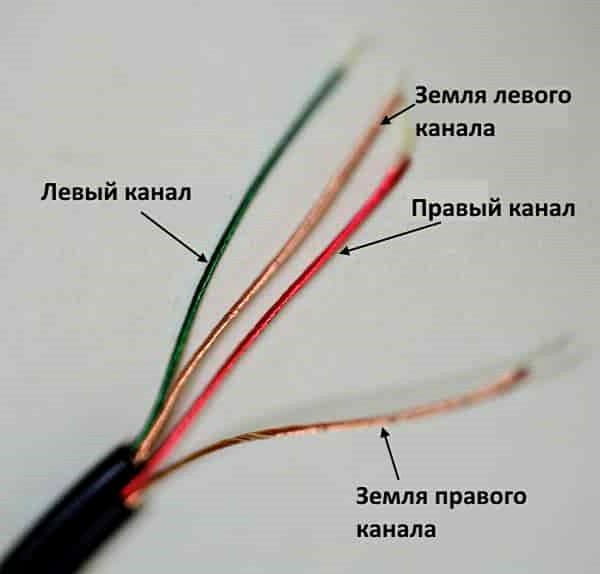Как и у любого правила, у этого тоже есть исключения, особенно это касается гарнитур. Например бывает, что правый — зеленый, левый — синий, а красный — это микрофон. Иногда провода не полностью одного цвета, а в цветную полосочку в сочетании с желтым.